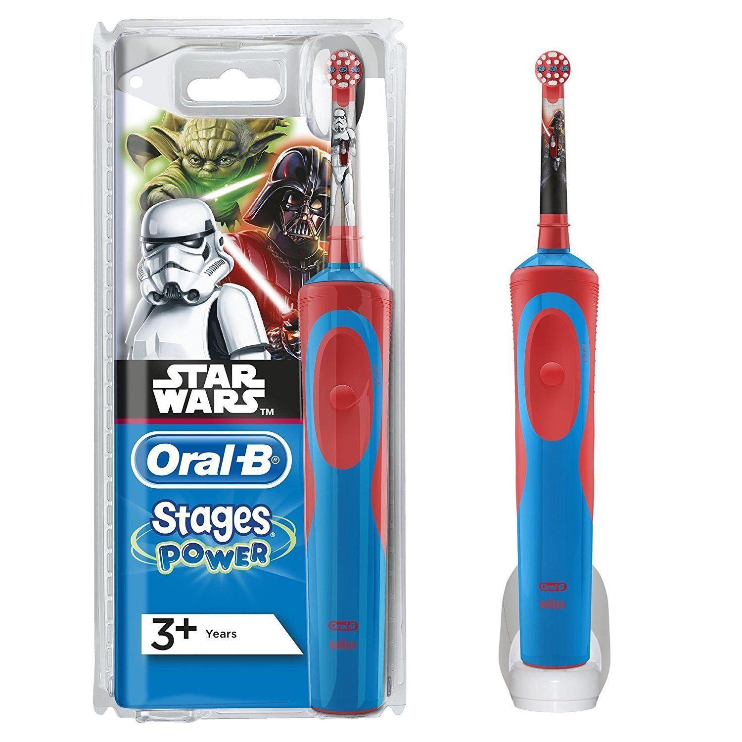 Oral-B Stages Vitality STAR WARS Electric Toothbrush for KidsRotating Powerhead reaches, surrounds and thoroughly cleans multiple surfaces. Extra-soft bristles clean teeth as gently as a soft manual brushRemoves more plaque than a regular manual toothbrushMakes brushing teeth fun with STAR WARS charactersWhite Trooper / Darth Vader version will be dispatched randomlyCompatible with the